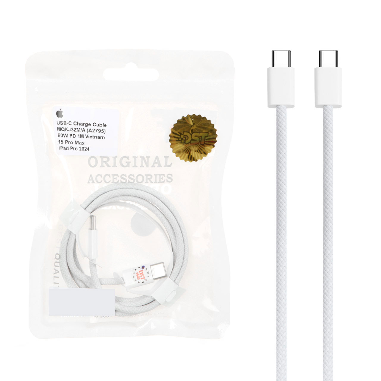 کابل شارژ سرکارتنی فست و PD آیفون 15 مدل MQKJ3ZM/A - سفید - DST (گارانتی شش ماهه)