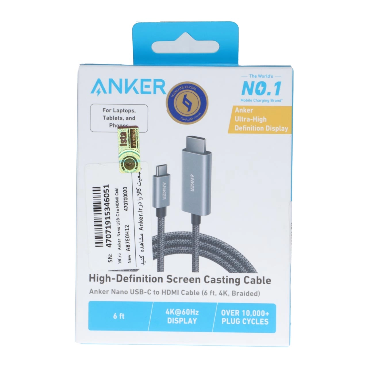 کابل ANKER Type-C To HDMI مدل A87E0H12 - مشکی (گارانتی 18ماهه حافظه طلایی ایستا)