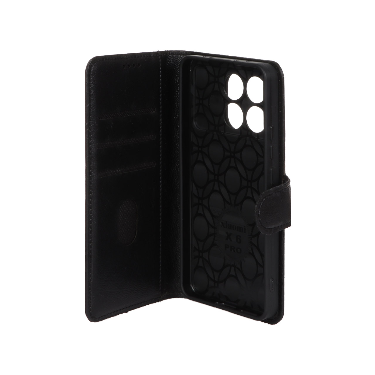 کیف موبایل چرمی مگنتی محافظ لنزدار Xiaomi Redmi 13X / Redmi 13 4G / Poco M6 4G - مشکی